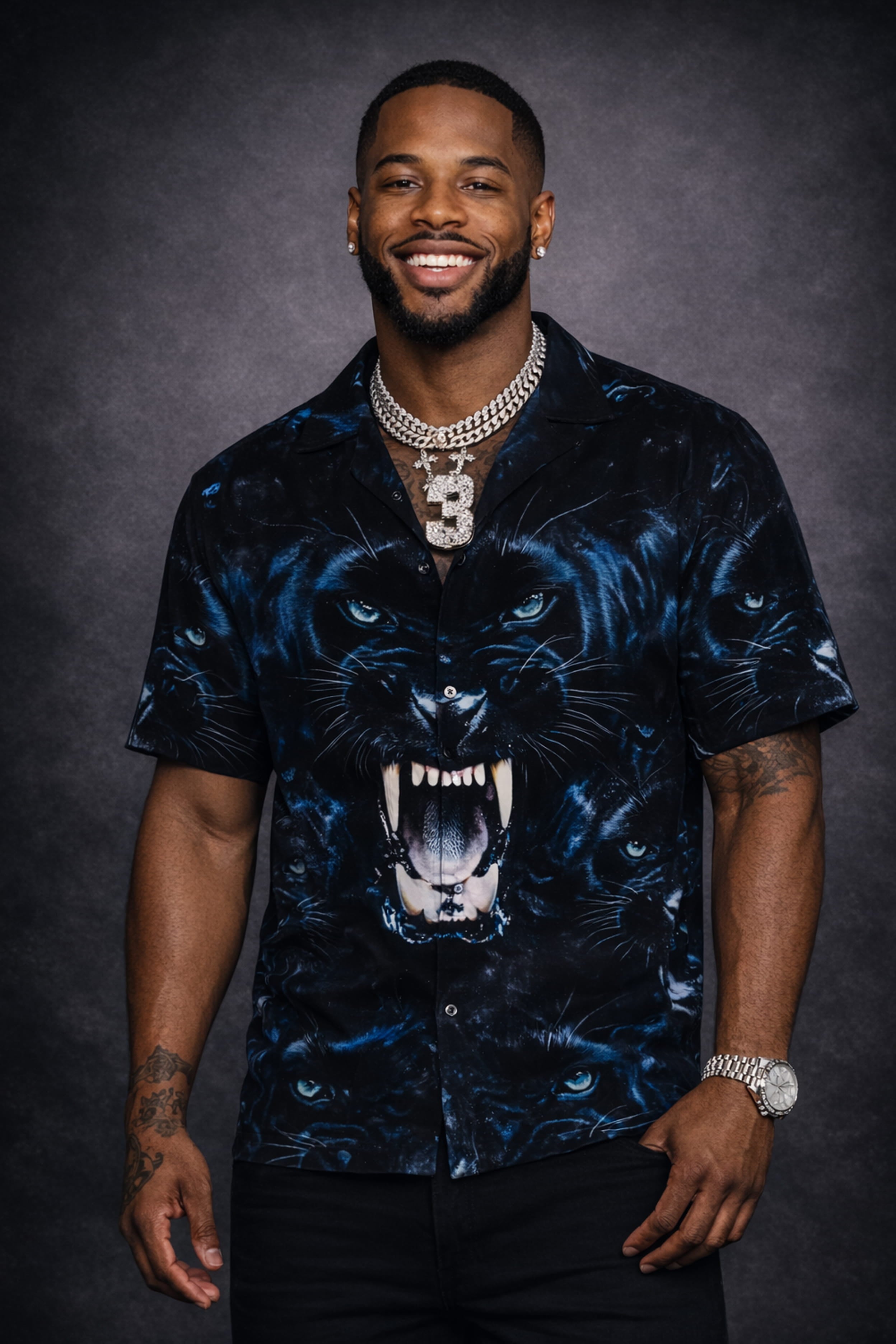 The Ron Killings R-Truth Carolina Panthers Hawaiian Shirt is a bold combination of strong athletic spirit and free-spirited Hawaiian fashion. The roaring black panther image represents strength, courage, and confidence – true to the warrior spirit of the Carolina Panthers and the unmistakable personality of R-Truth. This shirt is not just clothing, but a style statement for those who dare to be different and stand out.