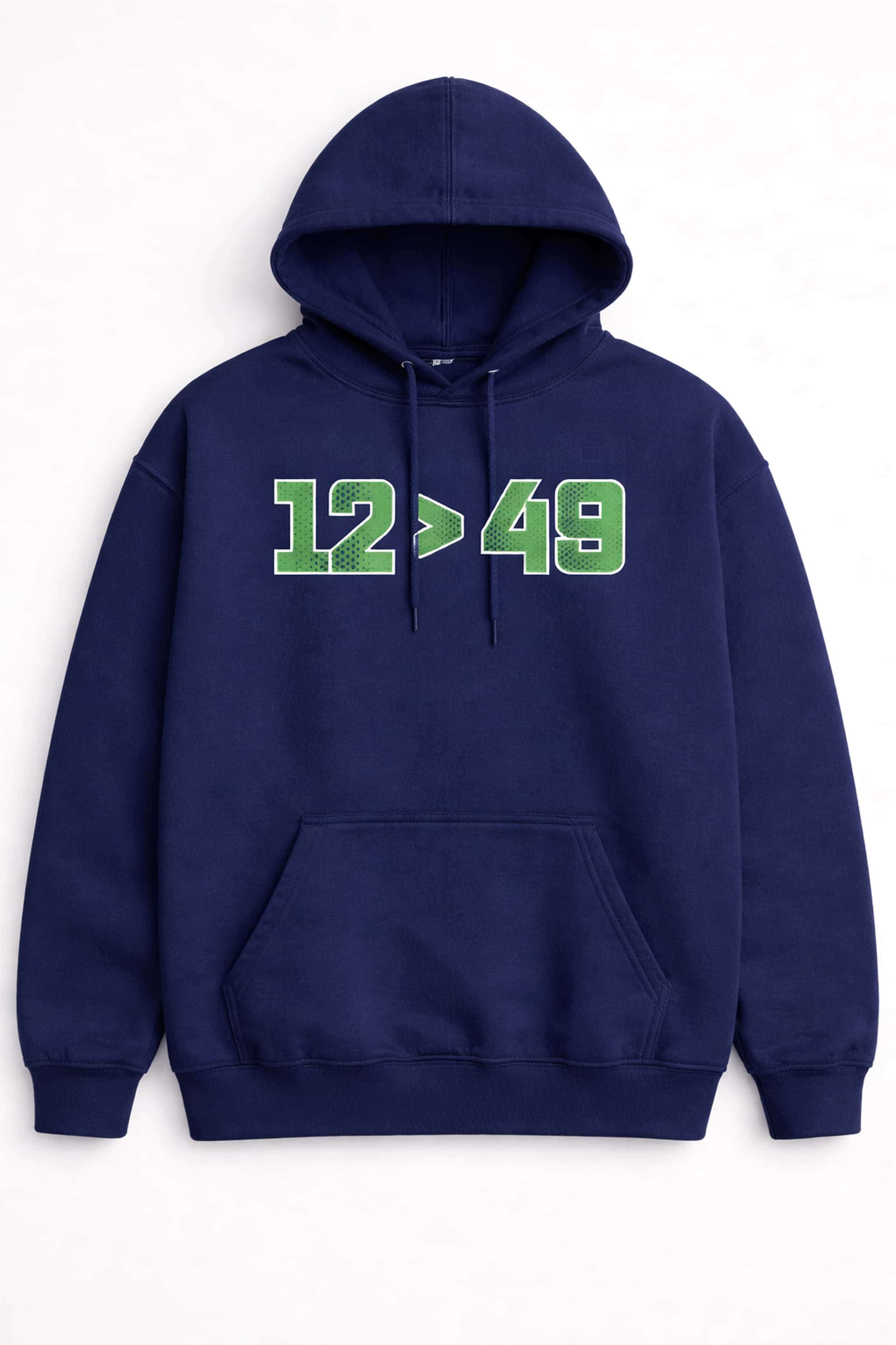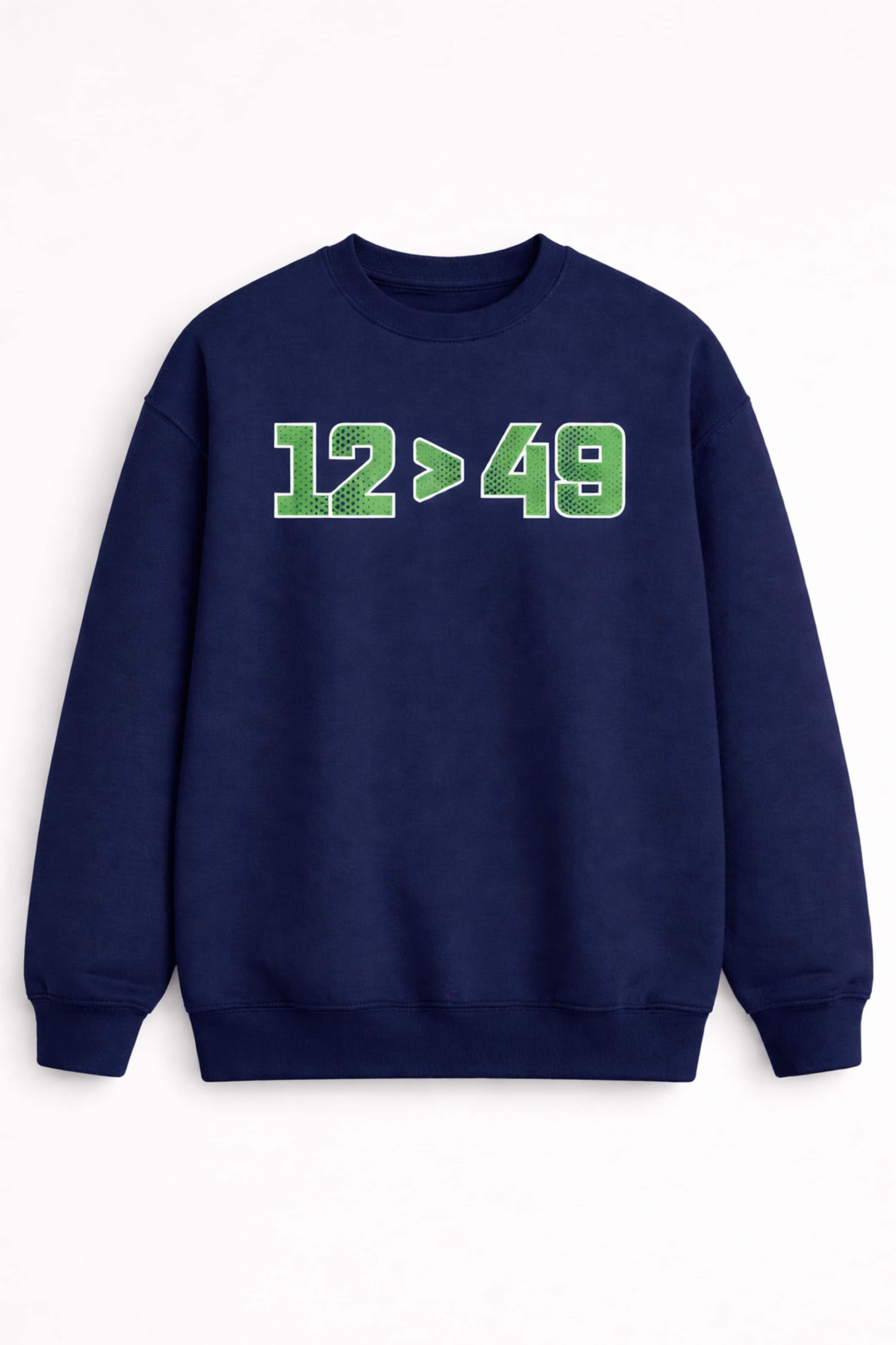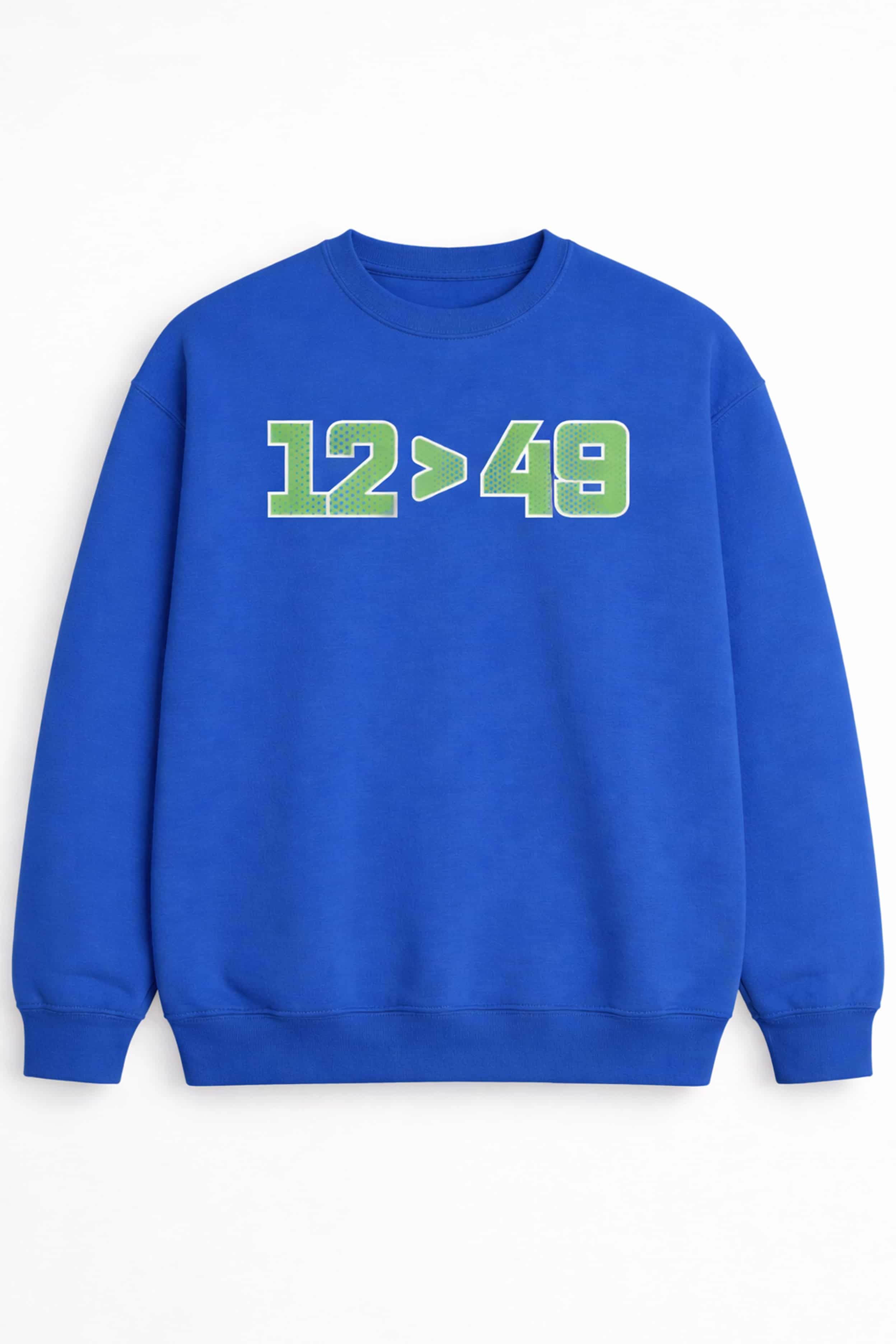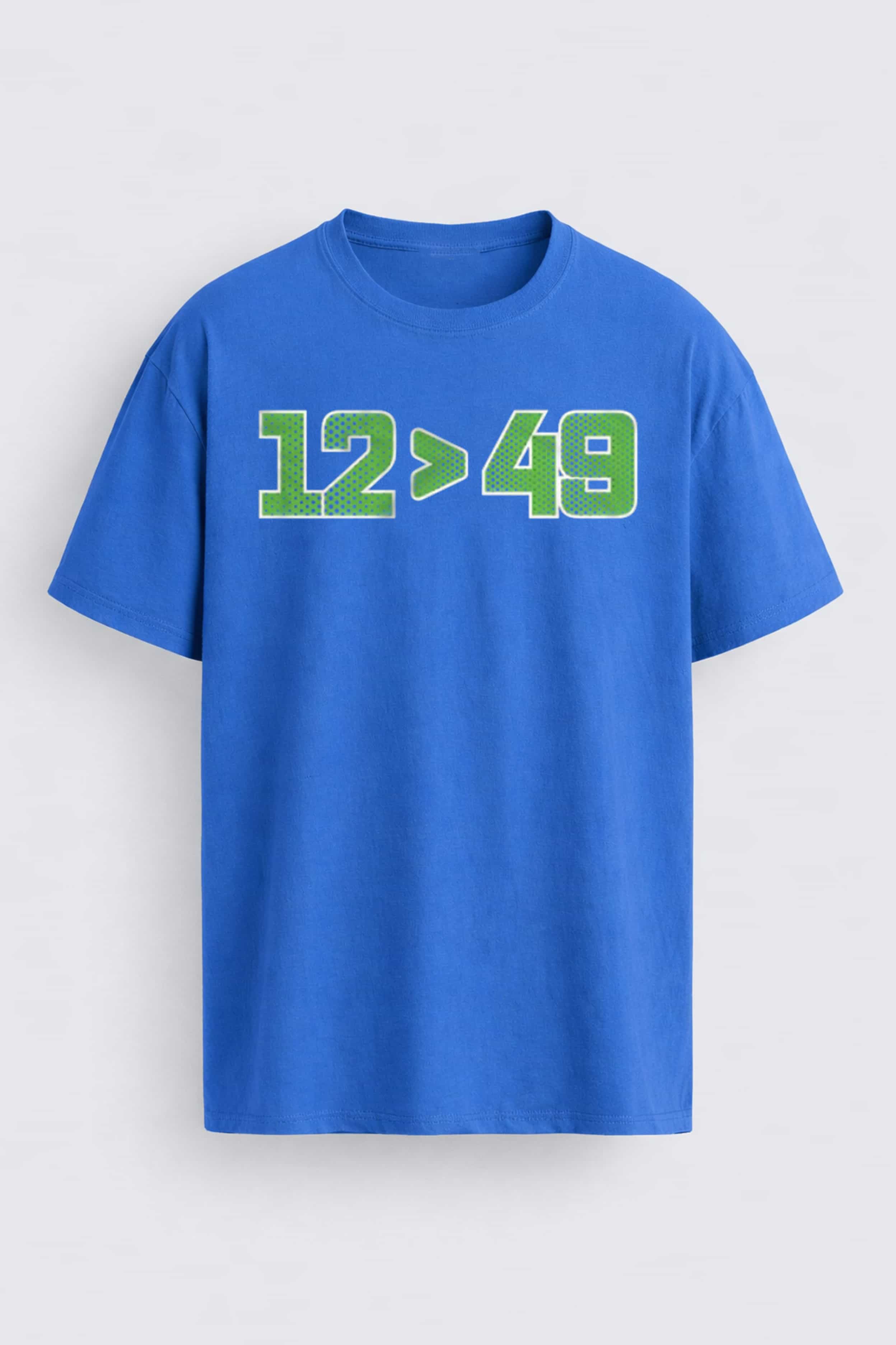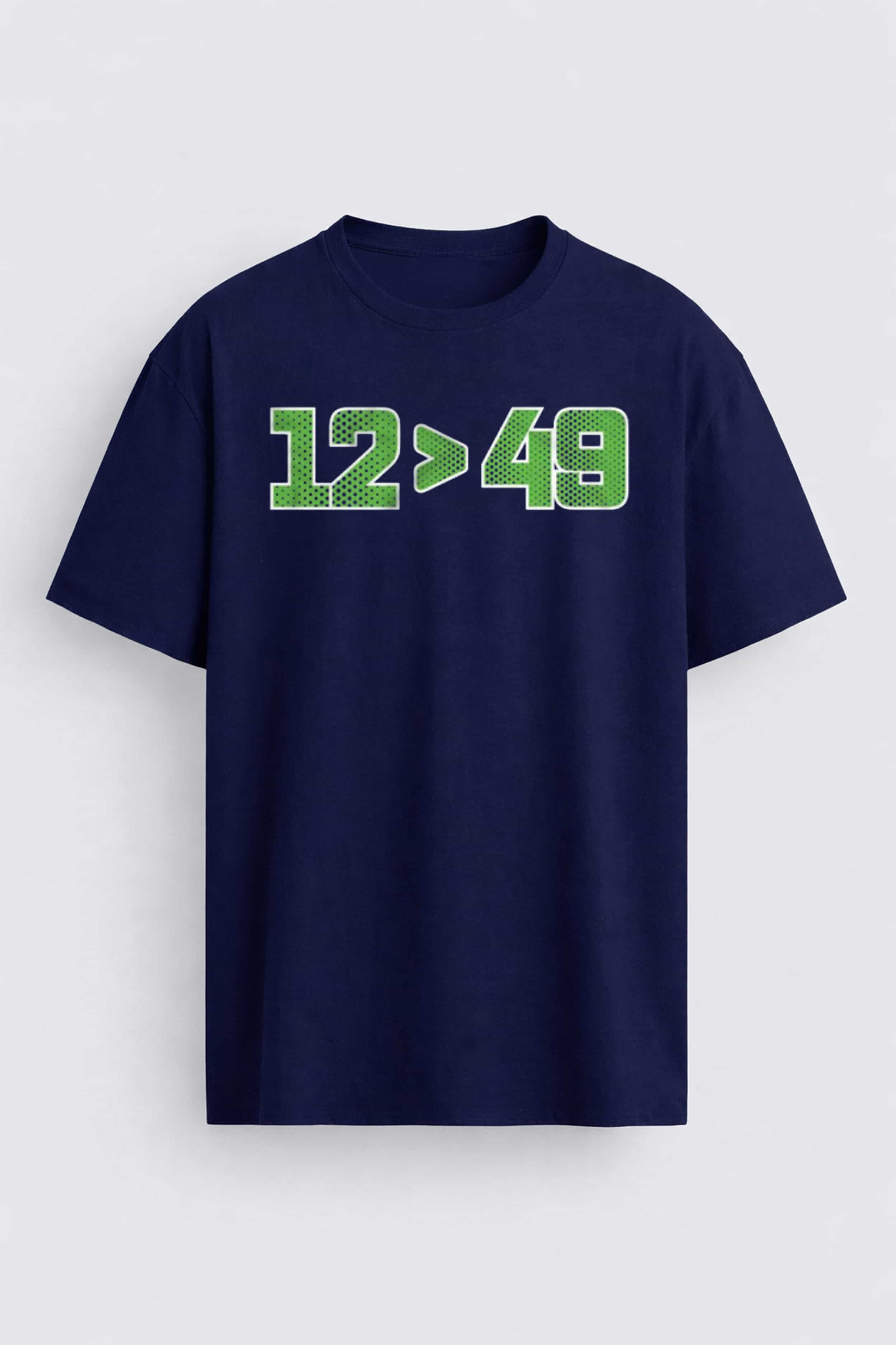 The Seattle Seahawks 12 49 Shirt is a shirt designed specifically for Seahawks fans – the "12" symbol representing the proud 12th Man community. The 12 > 49 design embodies a strong competitive spirit, simple yet extremely stylish. The sporty blue and green number font is eye-catching, easy to match with other clothing, and always makes a statement when going to the game, watching games, or wearing it daily.